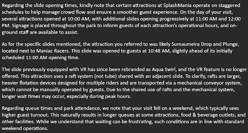 When I raised my concern, SplashMania asked me to email them. The response I got was mostly excuses rather than real solutions — basically telling me that this is “standard practice.”