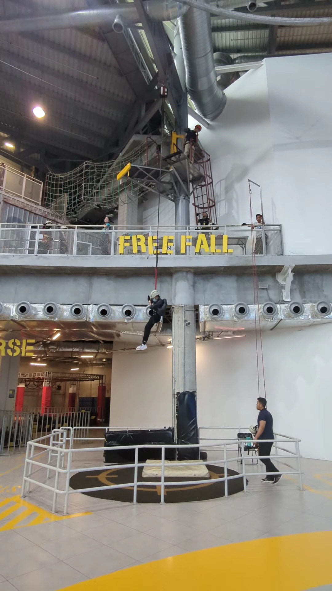 Briefing: for free fall, I would expect to land on cushion or suspended mid-air therefore was not prepared to stand. Instead I landed on my foot and nearly sprained my ankle, fell back and my back still hurts now. When I brought up to the staff that they should warn ppl that they need to land on their feet n prepare to stand - she replied "haha, surprise~"