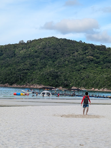 This is a private beach only for hotel guests. So you can't visit unless you are also staying at the Taaras hotel. The beach is very clean, white sand and plenty of shaded reclining chairs for guests to relax and order drinks and snacks. The hotel has also put up a couple of swings for people to Instagram the beach. The water isn't as clear as it used to be when berjaya first opened this resort, but it remains relatively clean and beautiful to swim in. there are also some bouncy floating castle things for kids to play in. The only thing that is a bit of a problem with this beach is the presence of sand flies, so use insect repellent.