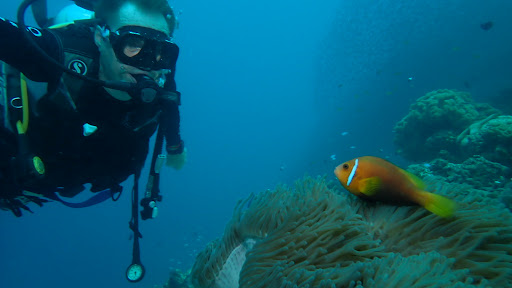 The Kandooma Thila is a pinnacle in the Kandooma channel. Very rich in aqatic life. Everything that wants in or out of the atoll goes through here. This means it’s a good place to spot some cool creatures. A morning dive here and we saw reef sharks (black white and grey), mantas, rays, turtles, barracudas, tunas, and a million other species like in a train wanting in to the atoll. Its absolutely indescribable…… this was unreal! Thanks to the guys at Maafushi Dive for fixing this...