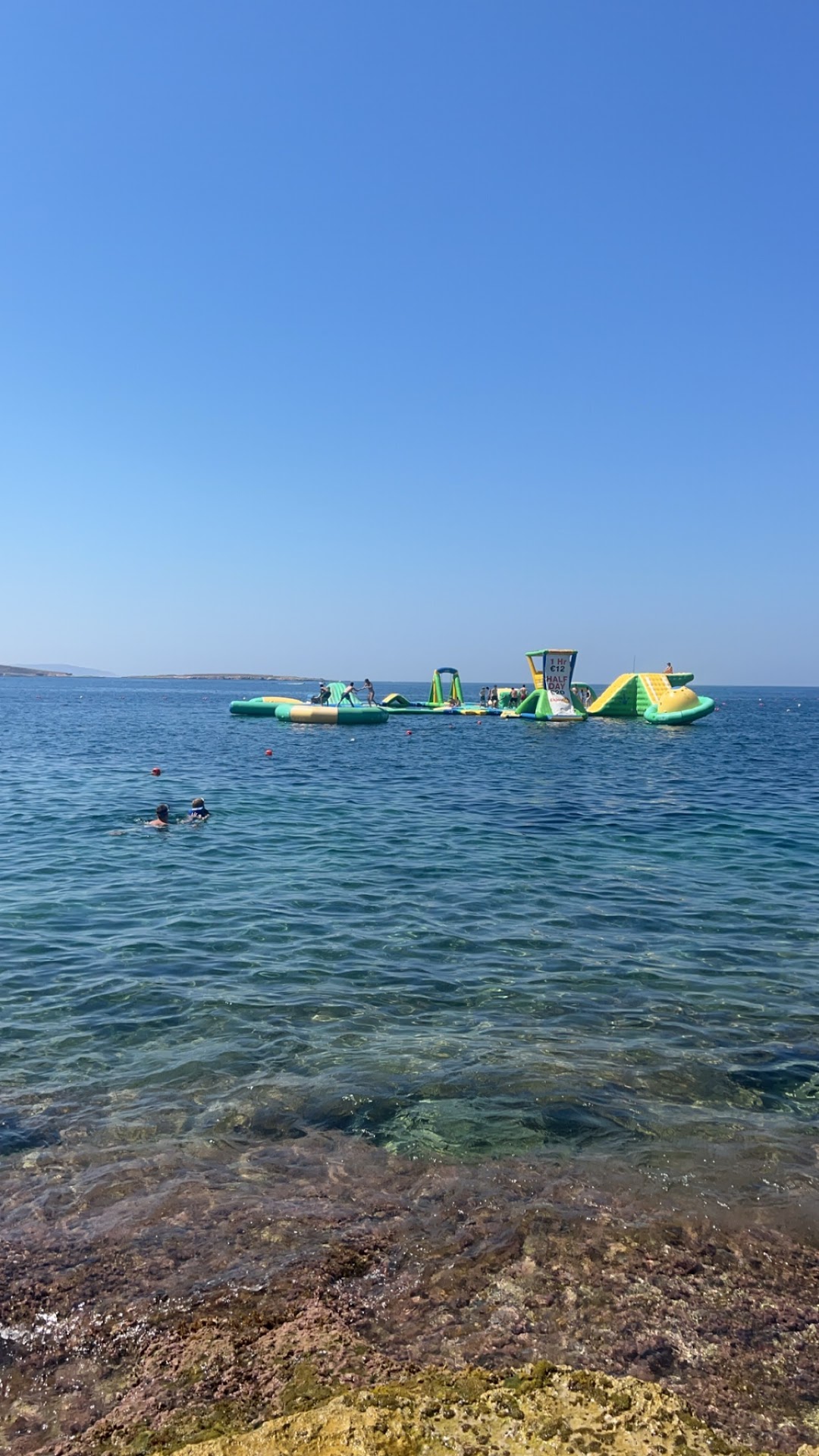 The kids tried the water park in the water. 12 euro for an hour. 8 and 11. It’s was fun but an hour were enough because they were so tired 😅 if you have kids that can’t swim they lend out life vest but they have to be over 6 years old.