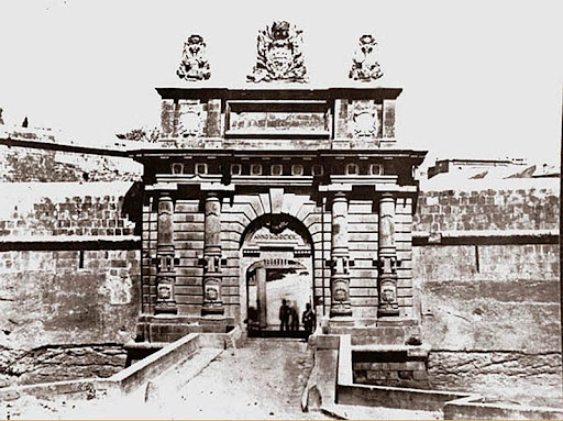 Il progetto originale era dell'architetto francese de Mondion, motivo per cui l'opera è nota anche con la variante francese "Portes des Bombes". Fu conquistata dai soldati francesi durante l'invasione napoleonica del 1798, ma oggi si vede uno stemma del Regno Unito, a ricordo della passata dominazione britannica.