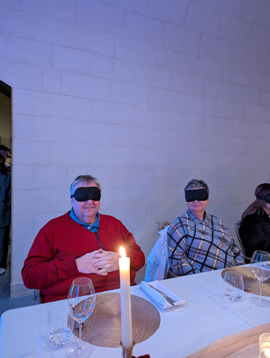 We attended an "eat in the dark" dinner, more accurately, "eat blindfold".
