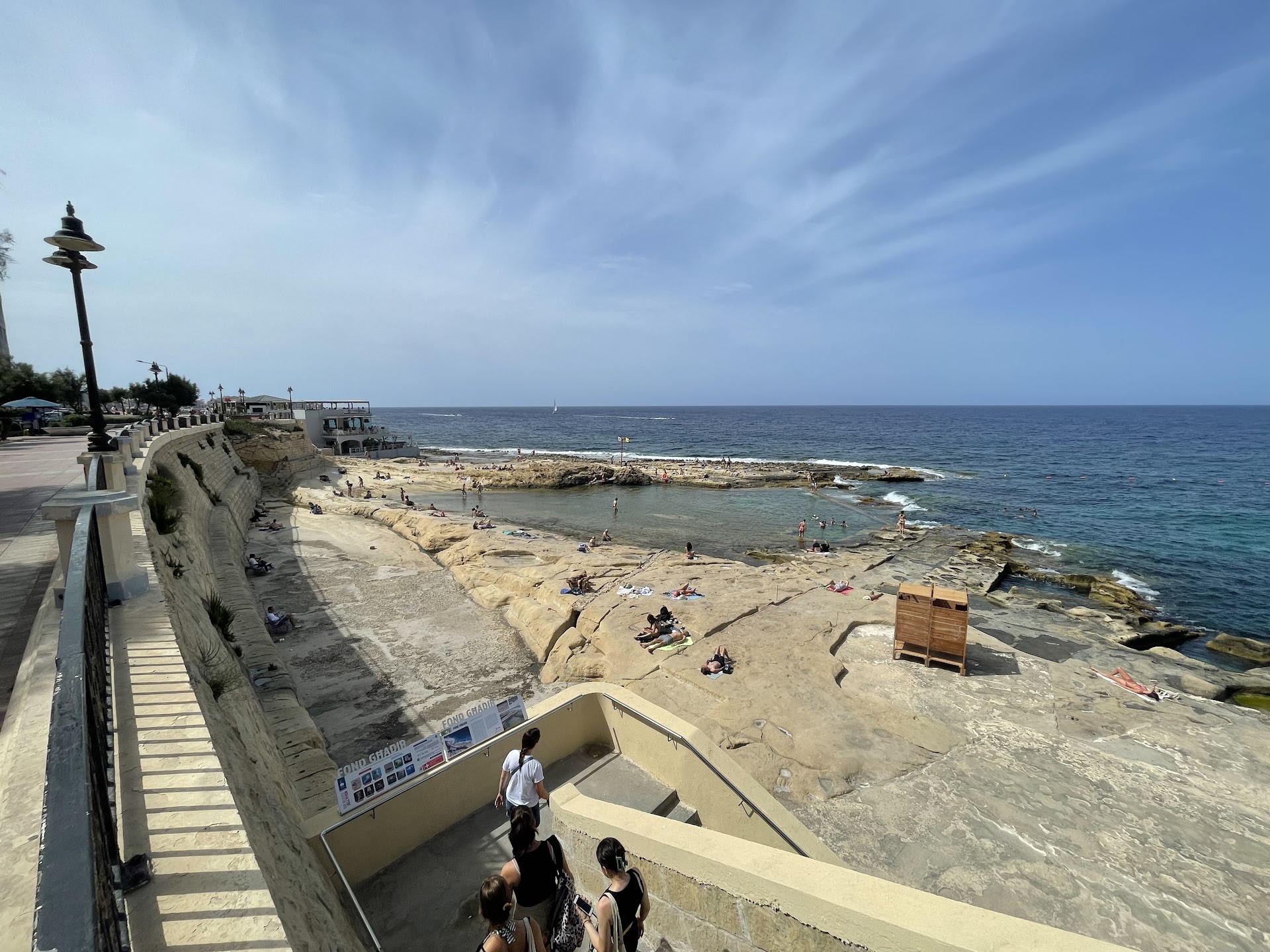There’s no Sandy beaches along the sliema promenade stretch but heaps of flat rocks to lay on and heaps of pool ladders to help you into the water off the rocks.
