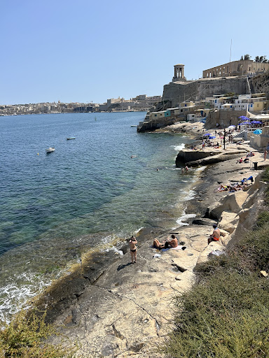 OK let's be honest - this isn't really a beach at all by most definitions - more of a rocky outcrop. Having said that I think this is a fantastic spot on Valletta and very unique. It's like a whole other world removed from the tourist trail and a great place to chill for a while. Sitting just below the Siege Bell War Memorial, it's a collection of small whitewashed fisherman's huts and offers good views across to Fort Ricasoli and Villa Bighi. There's a short coastal track you can follow from the far end that will take you to the Boom Defence, National War Museum and Austin Camilleri (the poetry carved into the rock face). On the right hand side you'll see various warships painted on...