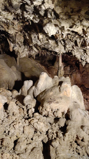 The whole thing has been left pretty much as it was found (apart from installing some electric lighting), so you just stand at one end of the cave and look through at all the stalagmites and stalactites. The cave apparently extends a long way back but isn't all visible.