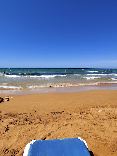 Read moreAs beaches go, this was one of the prettiest ones.I have seen here. The day that we were there.The wind was so violent that there was red flags flying.However a lot of people were in the ocean they do have lifeguards watching over which obviously ignored the red flags. The sand is a deep caramel color it looks like crushed up biscuff cookies!!! The wonderful thing is that it has facilities bathrooms and showers and a small restaurant which we did not try. There is a company of men that put up lounge chairs and umbrellas add a cost. Write outside of the beach.We also found a very\nIndustrious man that obviously used his land for a parking for a fee of two euros. There are also several outlets with bathing suits and floaties and things like that if you forgot yours. The road to get there was a little bit harrowing for those of us that don't drive On the left hand of the road because the streets are very narrow and they are two way streets!!! Put all in all a very nice experience. HowEver there are a lot of rocks in the sand so it's hard to figure out where to put your towel if you decide not to get one of the...