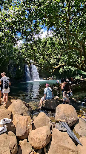 We left the car at the dead end at the roundabout and using Google maps navigated through the sugarcane fields like it was a maze. It is about a 15-minute walk from the roundabout to the waterfall.
