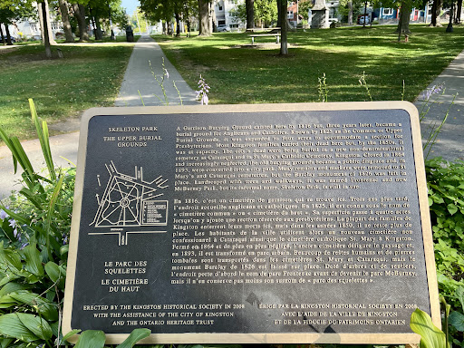 Read moreMcBurney Park, better known as Skeleton Park, was one time a City cemetery on the outskirts of Kingston. When City growth caught up with the cemetery, the decision was made to dig up the graves and move them further out of town. This decision was easier said than done and led to an awful mess with the associated sights and smells. The decision was made to close everything up, knock over the remaining gravestones, cover everything up with earth and plant trees. Unfortunately, human bones would periodically work their way up to the surface and hence the alternative name, Skeleton Park.