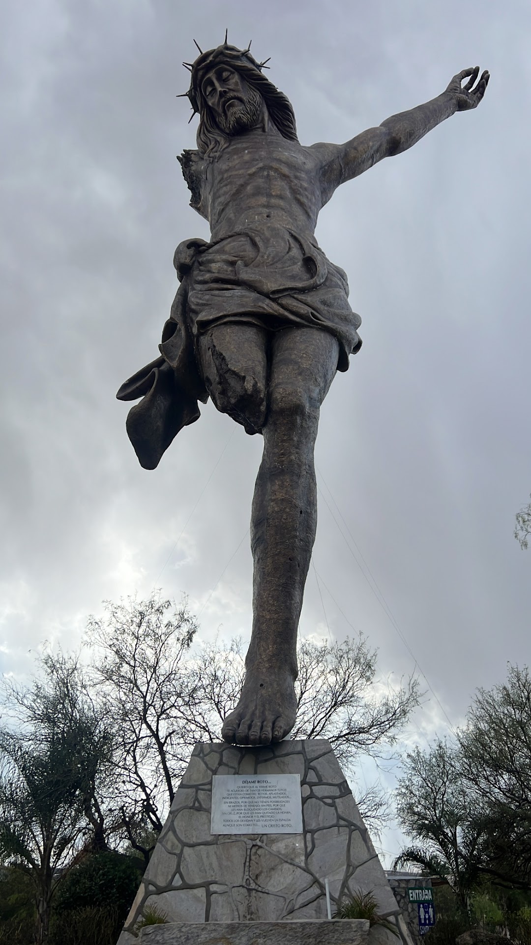 A unique place in the world, I love the explanation given by our guide. Broken Jesus is 92 feet high and it was made by a local artist based on a broken Jesus that a priest bought in Sevilla, Spain. The priest was gonna have it restored but at night Jesus in a revelation asked him to leave him the way it was. With a broken arm for those who don't have a job... With a broken leg for those who are sick, Ill, enprisoned and without hope... And without a face because he was suffering when he saw all the pain on...