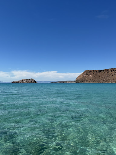 We spent three days at Camp Cecil de la Isla on Isla Espiritu Santo, which was the highlight of our trip. We boated all around the island and saw humpback whales, dolphins, and schools of feeding tuna. We snorkeled with a huge school of mobula rays, and spent time just cruising around the beautiful islands searching for animals and enjoying the natural beauty. We swam, snorkeled and kayaked around the beautiful bay right in front of the camp. The highlight for me was snorkeling with the sea lions and then scuba diving with them, where I had a sea lion playfully ‘bite’ my hand - no pain, just fun, like a giant friendly dog! Our camp mates were from Spain, Venezuela and Mexico so we had fun with the other guests in the evening. The food was absolutely amazing. We were shocked that such incredible gourmet food and drinks could be prepared right on the beach in the kitchen tent.