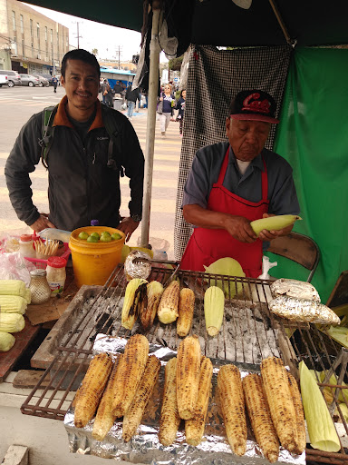 Street vendors surround the park with tacos, elotes, churros, y agua frescas.