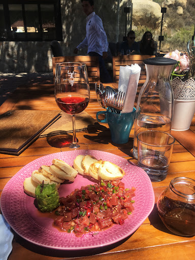 Los anteriores se me hicieron muy ligeros, frescos, acidez un poco alta , pero recuerden que cada paladar es diferente, hay personas que les gustan más ligeros, frescos, con acidez natural, a mí me gustan las uvas más reposadas en la madera, lo que se llama vinos de reserva, con sabores a frutos maduros, ligeramente a madera ese amargor sutil así que este viñedo me encantó y los vinos no son tanto de mi gusto, aquí comimos un tartar de atún de buen sabor, hay comida exquisita, la atención extraordinaria, el lugar muy lindo y un poco interno en el valle.