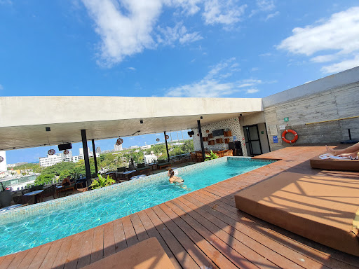 The rooftop pool has a nice view but what really surprised us was the lack of service in the restaurant on that same floor. Understandably, you are not allowed to consume your own food/drinks which is why I felt like ordering at least a "cafe con leche" for reasonable 45 pesos. Despite speaking some basic Spanish, I even pointed at the corresponding item in the online menu to make clear what I wanted. The waitress suggested to me an alternative coffee drink which "I would really enjoy", but I declined and repeated my solo cafe con leche order. What happened after was one big disappointment: instead of preparing my order right away, the waitress and the rest of the team (6 staff members in total to serve 6 persons) walked around, chit chatting, playing cards and hanging around. After 50 minutes (!) during which there were no other orders from guests, my order finally arrived... a coffee cocktail with liquor on the rocks sin leche for 190 pesos lol. Insisting on receiving my actual order, the manager Sebastian showed up, seemingly annoyed and not willing to understand the situation. In the end, I received my actual order after one hour and was punished with evil looks from the staff. Prices are in fact quite reasonable but the service does not even deserve one star. Do you really think I would tip for that kind of service?