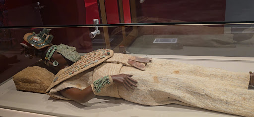La mujer tenía una edad de 40 a 45 años y fue enterrada en un sarcófago de piedra, el ajuar funerario esta formado por 1100 piezas de jade, concha, huesos y perlas que se utilizaron para confeccionar ajorca, collares, pulseras, orejeras y...