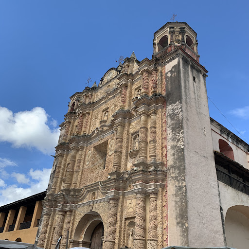 La fachada rosa de la iglesia es simplemente impresionante, está sobrecargada de figuras ornamentales como anagramas, sirenas, angelitos indígenas y grecas vegetales. Es una de las fachadas más decoradas del arte colonial mexicano y cautiva a quienes la observan.