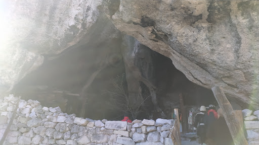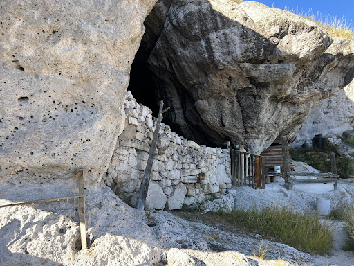 Es una cueba pequeña acondicionada por una señora taraumara, tiene su lugar donde pone a sus gallinas, un mini closet y un lugar donde almacena su comida. La señora que vive ahi se apoya con lo que la gente le copera para ver su forma de vida, venden algunos recuerdos. No es gran cosa pero llama la atencion el ver como vive, de la cual nos dieron la explicacion que ella coloco la barda que tiene la cueba para asi limitar su casa y cuidar a...