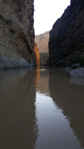 Walking down the trail which bring you down to the river is a great short hike. While this says Canon de Santa Elena Natoinal Park, on the other side is Big Bend National Park. The river on either side has 1,500 foot cliffs impossible except for professionals to assend or decend. The walk down the Big Bend side of the trail ends at a part of the river where you can wade out into the river and be both in Mexico and the United States at the same time when the river is low. The international Boundery is the deepest channel in the river. In may the deepest part of the river is 3 - 4 feet...