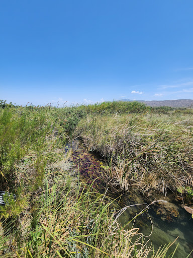 Llegamos a otro lugar donde se escucha que nace el agua, parece que burbujea, todo el tiempo que estuvimos aquí, hizo mucho viento, encontramos letreros informativos que nos explicaban por ejemplo que el aspecto blanquecino de los suelos se debe a las altas concentraciones de sal, también que el carrizo mexicano ha sabido sobrevivir en las condiciones extremas del desierto.