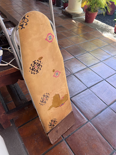 Iron old , missing parts , the ironing board had been wet and the particle board falling apart and glad I put a towel on it to iron as it stained the towel and would have stained my clothes. I feel the cost of the stay most definitely warrants an immediate improvement on this .