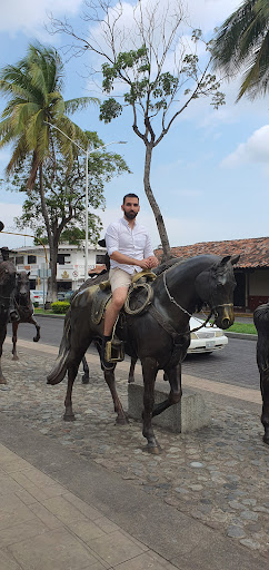 Sumérgete en la belleza del jardín del centro de Villa de Álvarez, en Colima, donde te espera una experiencia encantadora. Destacando en su esplendor, encontrarás el conjunto escultural de caballos de bronce titulado "La Cabalgata", una obra que añade un toque de elegancia y tradición al ambiente. No pierdas la oportunidad de integrarte y montar uno de estos majestuosos corceles negros para una foto que capturará el momento perfecto.