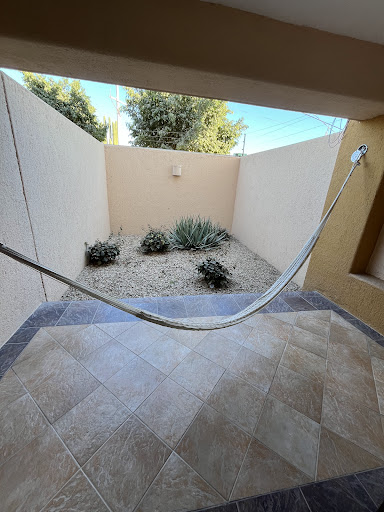 The is such a great boutique hotel. Clean, quiet. Breakfast is best! Friendly service. Room clean. Infinity pool is amazing. Landscaping super nice. Tips: bus comes every 20-30 minutes. You literally cannot cross that freeway. Driveway falling apart from rain and mudslide. Do NOT call a taxi from reception they will try to rip you off. 350-400 peso round trips for 800 pesos and call a misunderstanding when clearly trying to take advantage. Why Uber exists and preferred. Uber wasnt a 100 peso or $5 USD was usually $6.5-10 or 130-210 ride. There is a grocery store at Marina mall that we stocked up on sushi, don't get the pizza pretty gross, pastries for 10-20 pesos. Their is a food court in mall between pricer bars and restaurants, the 2 scoops of ice cream for 105 pesos but looks like gelato and the grande sized ice cold juices for 55 pesos at the place La B...something was such a treat!!! Los Patios has a swim pool towel system, cute courtyard, bar, restaurant i didnt see anyone enjoy but is there, luggage storage, a balcony that can see just 1 of those famous cabo rocks, freshly made eggs anyway you request them, water tastes clean nonchlorinated, and English speakers or use phone translations for those that need that. I would def stay here again and enjoyed not having to do huge resort walking and atmosphere for half our week here. The pool is 4.75 feet deep and warm. The hotel is weird spot, not walkable during our time because rain puddles cars splashing and in mostly non paved dirt road. If you are coming from the marina side of freeway you have to go quite a bit past hotel to take exit to turn around. Seems like your right there near Costco and Walmart but not sure...
