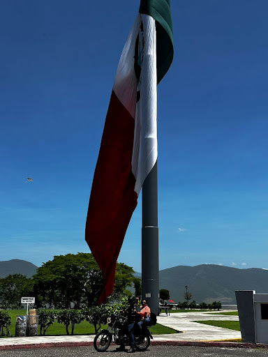 Justo cuando llegamos acababan de bajar la bandera porque estaba haciendo mucho aire. La guardia nacional y el ejército son los que la resguardan y es su responsabilidad evitar que el aire la vaya a romper, pues si se daña la bandera, tiene un costo de $250 mil pesos mexicanos o 15 días de arresto. Qué bonito ver un lugar tan emblemático para el país. Ojalá en otra ocasión nos toque ver la bandera gigante ondeando al viento. El 24 de Febrero, día de la bandera, hasta el Presidente de la República viene a hacer honores a la bandera aquí, junto al ejército y muchas escuelas de Iguala. Dicen que se pone bien padre! Hay unas alitas de metal en las que te puedes tomar la foto para...