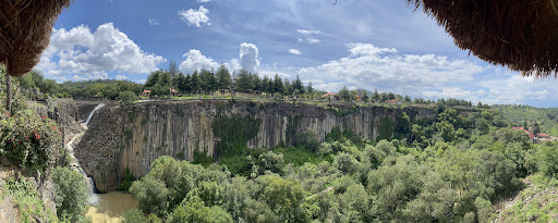 Do not miss the very old dwellings below the longest waterfall! Pay attention to the amount of light outside. Make sure to leave the dwellings more than an hour or two before dusk. Lots of stops to admire before the grand finale! Walk toward the pond area. Enjoy the grounds. Very pretty plantas. (To the left of it you can get a closer look at the longest waterfall we originally saw from above.) Exit toward the opposite side under the large tree branch braced between a pair of tall stone walls. Follow it out. Cross the river. (There is a concrete bridge) follow the Fork left, the trail goes down hill. It's a pretty short distance. My friends sixty year old mom did it twice in the few hours we were there. Ends with a lovely little pool and water fall from another canyon of basalt columns. I loved being able to get a good glimpse of Mexico's forest terrain....