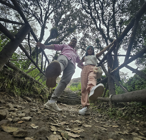 La caminata es larga, recomiendo llevar calzado adecuado, ya que al parecer es bajada de agua por lo que hay muchas piedras. Nosotros fuimos a las 6 pm para ver el atardecer, es una experiencia linda, el único problema son los recorridos turísticos que hacen sus dinámicas al centro del mirador: tardan mucho y dicen una sarta de estupideces que sólo quienes lo contratan las creen. En efecto en el centro hay un efecto acústico interesante, pero lo que te carga de energía o te libera no es la dinámica sino la caminata que te llena de oxígeno limpio del bosque circundante. Además te apresuran para que puedan hacer sus dinámicas, impidiendo que puedas disfrutar del efecto acústico. Intentamos volar un dron y nos dijeron esos tipejos que no podíamos hacerlo ya que nos iban a sancionar. Bajamos a la entrada del mirador y en efecto nos recomendaron sacar un permiso en la policía turística del parque, pero en Mineral del Chico nos dijeron que no había problema ya que no es propiedad privada... en fin.
