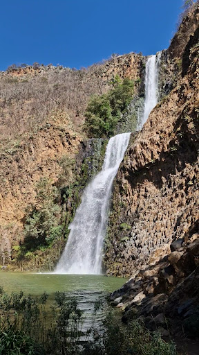 Unas personas se nos acercaron ellos subian nosotros bajamos nos dijeron parece que va llover. les recomendamos no mas de 5 min abajo y suban de nuevo aqui es muy peligroso las bajadas y la cascada sube muy rapido de nivel. llegando a la cascada menor el agua estaba color cafe, efectivamente estaba creciendo si cause. somos 3 personas las que bajamos de tiempo hicimos 1 hora de subida fue el mismisimo infierno presente. Fue una lluvia torrencial con granizo la peeeor experiencia que ni a mi peor enemigo se la desearia ni a nadien. Los caminos o senderos se volvieron una cascada mas. subimos gateando parabamos facil cada 5 metros no pedimos imploramos a dios que esta lluvia se detuviera. cada paso era un paso entre morir o vivir... duramos sercas de 1 hora solamente en llegar a la desviacion de la cueva de los cristeros donde empieza lo empinado por mas equipo que lleves o calzado adecuado una lluvia en este lugar no te salva. a un nos seguimos preguntando Como fue que salimos de esto. No es lo mismo contarlo que vivirlo en carne propia. Si ves una nube del tamaño que sea Sal de la cascada inmediatamente o puede que no corras con la misma suerte que nosotros en subir. ¿que si volveria a ir? SI hasta cierto punto como la cueva de los cristeros o el mirador pero...