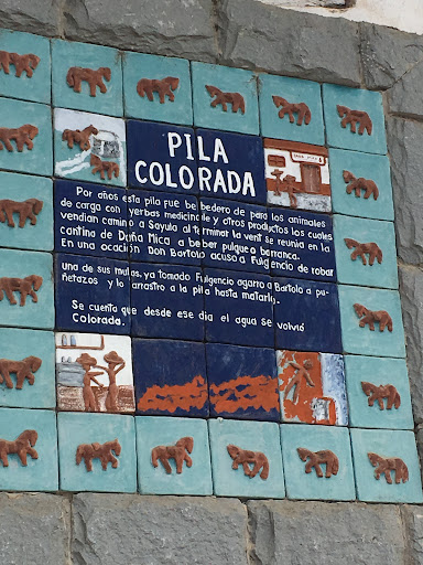 Esta es la leyenda que leímos frente a esta pila muy bien cuidada y de agua roja.