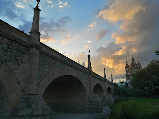 Read moreUn bonito puente que sirve como vía para salir del centro de Lagos de Moreno, curiosamente el puente conserva una placa que añade al pasado en el que fue construido al señalar que "este puente se cruza por arriba", ño que resulta en una manera graciosa para conocer la historia de este pueblo mágico en la que los antiguos habitantes trataban de ahorrarse el impuesto aplicado al cruzar el puente, pero por debajo del mismo cuando las aguas del río...