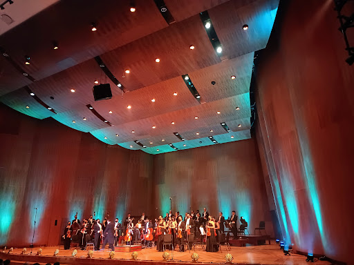Read moreCompletamente hermosa, un tanto cuanto más sencilla la sala Covarrubias que otras visitadas, sin embargo se respira arte hermoso solo con cruzar del lobby a la sala de conciertos. Hermosa resonancia que penetra tu piel con cada nota y cada acorde salido de los instrumentos de los maravillosos músicos de la "Orquesta Filarmónica de la Ciudad de México" los cuales te transportan a otros tiempos y lugares salidos de los cuentos narrados por Shaerezade de las mil y una noches en éste caso; así cualquiera niño sale feliz e inspirado para leer, investigar y escuchar música, crecer y educarse. Lamento no haber tomado fotos suficientes de éste bello lugar, prometo hacerlo pronto y completar la secuencia de la fachada y hasta las salas y el recinto en general. Lo único que definitivamente arruina el lugar, es el crecimiento de la ciudad lo cual ha llevado a ocultarlo con pasos peatonales, puentes para vehículos y el exceso de autos que transitan por la zona, la cual a unos pasos tiene un yacimiento arqueológico precioso de los más antiguos de la ahora ciudad de México. Muy agradecido por permitirme ver que mi nieta mayor puede crecer aprendiendo del bello arte musical...
