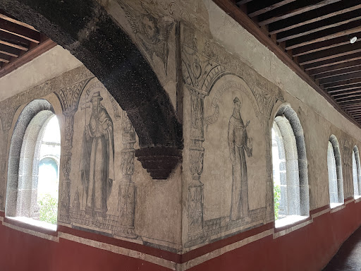 Me encontré con la gran sorpresa de frescos pintados en las paredes representando escenas de la vida de Cristo y de los Santos. Imaginar que tienen casi quinientos años me hizo apreciar la simplicidad del dibujo y los colores. Se conserva el ambiente austero de un edificio en piedra volcánica. Quienes estaban aquí lo hacían con el único propósito de vivir para Dios. Los jardines son espacios de quietud, hay silencio. Se puede pasar un buen rato de lectura aquí o tomar una siesta sin perturbaciones.