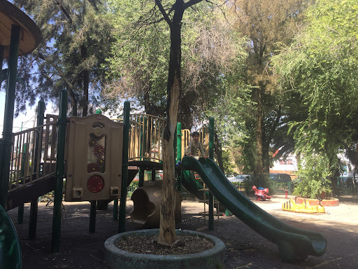Read moreEs un parque pequeño, pero con todo lo necesario. Hay juegos infantiles, aparatos para ejercitarse, muchas áreas verdes, una casa de la cultura, un centro Pilares, pista de trote, bahía de estacionamiento, un brincolín y una casetita pintoresca en la que se venden golosinas; en general se está bien. El gran problema es que en la tarde - noche, hay personas que colocan bocinas portátiles a todo volumen y piensan que todo el mundo lo disfruta cuando realmente es molesto, y como siempre, los perros sin correa, lo que es sumamente molesto. También hay una persona en situación vulnerable viviendo en una de las bancas y aunque no es agresivo, el olor que desprende es muy fuerte y desagradable, además de que causa basura y desechos humanos en los prados...