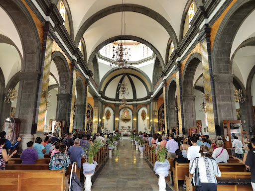Es una iglesia preciosa, tanto por fuera como por dentro. Por fuera, es imponente, con sus torres bastante altas y una imagen majestuosa perceptible desde lejos. Por dentro, una parroquia hermosa, llena de detalles, elementos dorados perfectamente colocados y pulidos, reliquias impresionantes, esculturillas finas muy bien hechas, púlpitos, altar para música en vivo, confesionarios y más. Personalmente, me gusta visitar y conocer iglesias aún sin ser religioso y esta, sin dudas, es una de las más bonitas que he visto. La única desventaja es que no se le puede tomar una foto decente a su fachada principal porque justo enfrente, donde mejor se le puede retratar, a veces se pone un tianguis en el arroyo vehicular y el único ángulo que te queda para retratarla está muy cercano al edificio. Pero eso no evita que puedas sacar varias fotos a este...