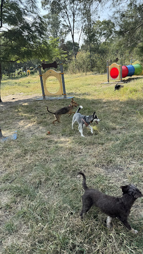 El Parque Ecológico Las Águilas es un lugar espléndido para disfrutar de un paseo con tu mascota. Cuenta con una zona para perritos bastante amplia, ideal para que corran y jueguen libremente. Aunque algunas áreas se ven un poco desgastadas, el parque ofrece una gran variedad de juegos para los caninos, desde túneles hasta áreas de entrenamiento que permiten mantener a nuestras mascotas activas y entretenidas. Además, el ambiente natural y las hermosas vistas lo convierten en un espacio muy agradable para toda la familia. Definitivamente, es una excelente opción para quienes buscan un lugar donde los perros puedan socializar y divertirse en contacto con la naturaleza.
