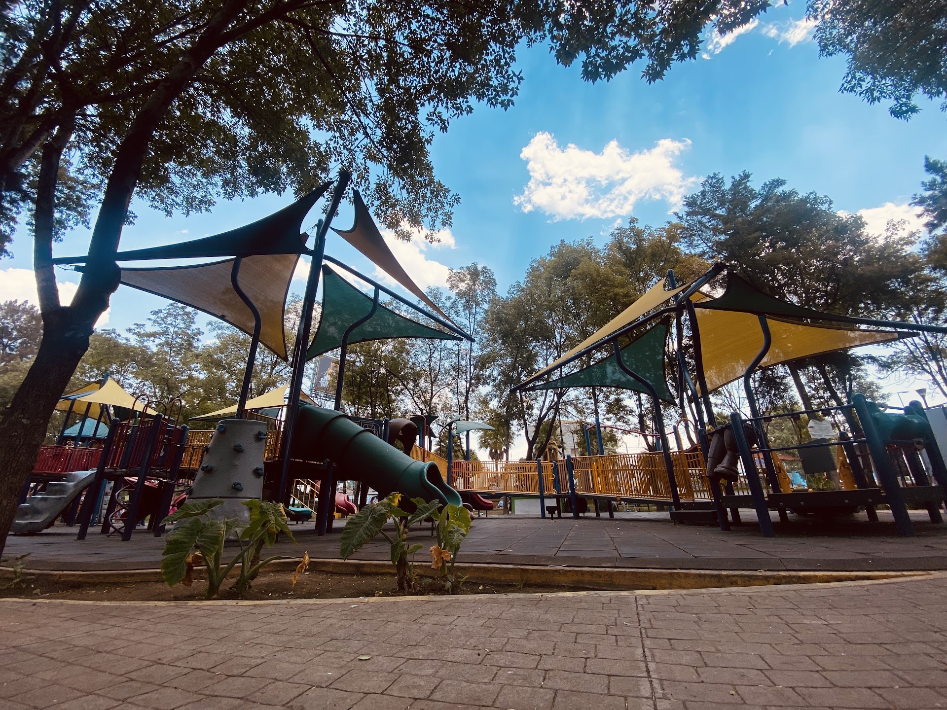 Parque en muy buenas condiciones y de acceso público, sendero para correr, área de juegos infantiles con piso especial y juegos en buen estado (no oxidados o rotos), hay baños disponibles con un costo de $6 y afuera hay lavamanos. Muchos puestos para comprar agua, refresco, jugo envasado, chicharrones preparados, hotdogs y fruta, también hay pintacaritas, trampolines y pelotas infalibles (estas 3 con costo adicional). Área de gimnasio (aparatos) al aire libre. El lugar en general está limpio y con vigilancia, lo recomiendo para pasar la tarde en familia, ya sea que traigas una manta para hacer tu picnic o rentes un espacio cerrado o al aire libre para tu evento. Hay cancha de fútbol cerrado con bancas disponible, lo malo es que le falta mantenimiento al césped artificial (ya se arrugó y rompió la alfombra). Hay una mesa para ping-pong solo lleva tu red y equipo No se permite la entrada a animales o acceso con patines, bicicleta, patineta, etc. Al área de juegos está prohibido el acceso a adultos sin niños (excelente). No hay estacionamiento busca alguna calle cercana. El parque tiene cerca todo el rededor, el acceso es por el puente peatonal. El horario de acceso es de 6am-6pm de martes a domingo (más...