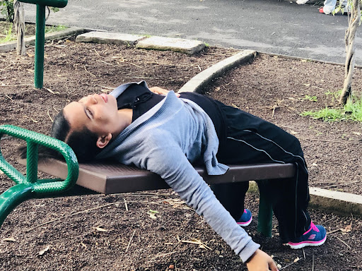 En el lado positivo, tiene un camino que se encuentra amortiguado - creo que se le dice "tartán"- color azul, que sirve para disminuir el impacto del caminar o correr en las rodillas (ojalá hubiera más así en la ciudad).
