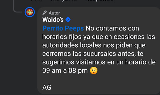 En una ocasión, me tocó ir a waldos Acoxpa, y ya se encontraba cerrado, preguntamos y nos comentaron que cambiaron su cierre a las 9:00pm. Posteriormente se acercó a una señora y se puso super loca de que en internet decía que cerraban a las 10:00pm la persona le comento lo mismos, que habían cambiado el horario de cierre. Y la señora peleando como loca, dios mío por lo que tienen que pasar los empleados, la cual ellos no tienen la culpa de que la empresa cambie los horarios de cierre, dejaron pasar a la señora y saben lo único que compro fue un refresco, por dios un refresco, cuando claramente se encuentra Walmart, bodega Aurrerá cerca, a veces nos preguntamos xq los empleados están de malas, pero imaginense tratar con este tipo de gente, les dejo una imagen donde la misma tienda refiere que no tienen horario...