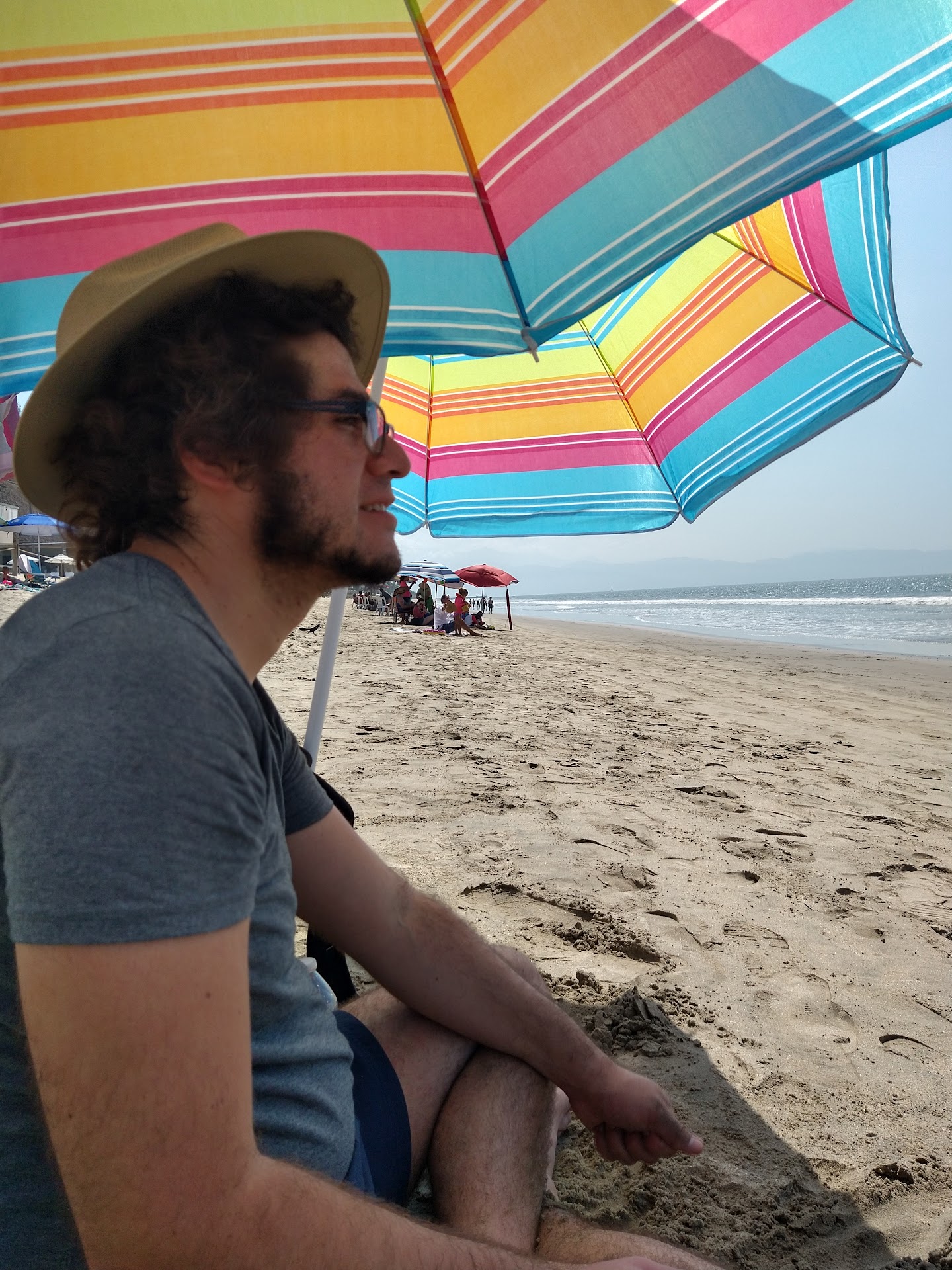 The water was calmer than the areas we'd visited in Puerto Vallarta, and while there were still decent sized waves, they weren't quite as strong. The water wasn't very clear, but the sand was soft and there were almost no rocks or shells. Not many people on the beach, so we had a big area to ourselves. It was pretty windy when we were there, but I don't know if it normally is.