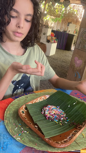 My friend and I participated in the cocoa workshop and were very pleasantly surprised! We got to learn about the history of cocoa in the world, and in Mexico, we got to see and actually DYI the production bean-to-bar and also taste all the semi-products of it (even the fresh cocoa beans with pulp!). We made our own little chocolate paste bar that we got to decorate as we pleased, all of it we did while sipping on practically unlimited agua de cocoa pinoche (tasty AF - pardon my language 🤭).