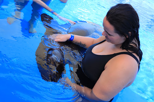 I did the trainer for a day adventure with Karen leading the way for me. I was lucky, I was the only one in the adventure that day, so all of my questions were answered. Karen showed me the ropes, then left me with Veronica to help train dolphins Mila and Jojo.