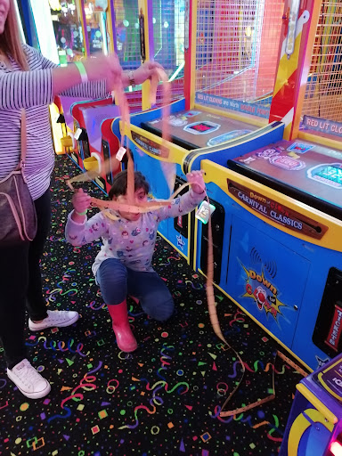 Read moreLugar con diversa variedad de juegos electrónicos para diferentes edades, algunos juegos te dan tickets y otros no, estos tickets los puedes cambiar por algún premio que van desde dulces a juguetes, con el apoyo de una tarjeta electrónica. Los juegos son bastante interactivos, como máquinas de baile, de lanzamiento de pelotas como basketball, fútbol americano, soccer, entre otras, mesas de hockey y futbolitos, juegos donde te subes a ellos o usas algún accesorio para interactuar. Buena y agradable atención...