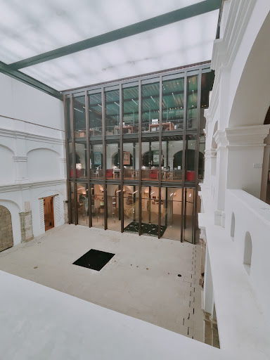 Puedes ir a pasear, ingresar a la iglesia, caminar, sentarte a disfrutar del espacio o beber un café, comer en una cafetería que se encuentra en un extremo de ese magnífico lugar. Es un espacio con luz y sombra, religioso y secular. Combina muy bien lo moderno con lo anterior. Cuenta con una biblioteca que es el edificio contemporáneo que se integra muy bien con las obras coloniales. La restauración me parece magnífica.