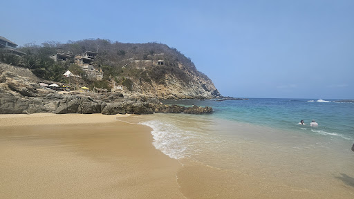 Read moreBeautiful little bay for swimming, a little challenging to get there as not well marked. Very steep hill into the bay to drive down, there is a parking area right down the end on the right. There are 3 sections to the bay, so explore before you pick a spot. We encountered jelly fish when we first arrived, but they were almost completely gone not long after, you just had to keep an eye out. Food at the middle restaurant on the beach was amazing. 4 beers and 3 delicous octupus tacos for $390 (pesos) plus the chairs and umbrella for the day. We also got to see...