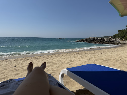 Beach club is a short walk on the beach to the baby turtle release everyday at 5pm. There is a secret beach you can pay $50mxn to access from a hotel two blocks away. The fee covers bathroom usage. You can pay extra to use lounge chairs or layout on the ground for free. Shade is limited. Highly recommend exploring the surrounding neighborhood. There are cafes in walking distance that we...