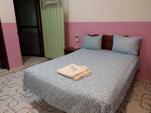 24-26/1/24 Room 11||||We three middle aged guys from London had booked a hotel online from Birmingham where we were flying from to Cancun. We were intending to stay a couple of nights.||||On arriving the hotel found that our booking was 'cancelled'* so recommended we stay in an unlisted unreviewed hotel out of the centre. Finding it on Gglmps it was next to a sex shop. Luckily we had not paid as the system is to pay on arrival in cash...||||*The receptionist said that our credit card could not be verified (csv incorrect) so the booking was 'cancelled'! This has happened before with Bkg.c and an email has arrived to tell us... unfortunately we were on the flight, Cancun Airport was busy and chaotic with no functioning wifi or SIM shops. The roaming charges are exorbitant. Oh well.||||Using the hotel's internet I looked up TA to find this place a ten minute walk away. We were desperate, laden with our carry on small rucksacks and it was hot & humid! Gglmaps showed it was on the busy road but we were desperate for a budget place. We reserved it immediately.||||We walked down the Ave 10 to find it quite easily and on entering the friendly male receptionist found our booking and took our 1800mex$ for the two nights. He then locked up his office and took us to the room on the first floor.||||It was a reasonable size, firm double and single bed with clean sheets.||||A large fan controlled from the bedside blew our spare notes around. A small led tv was mounted above the single bed as was a mirror and fold out table. The single bed was freestanding in effect with to the pilllow by a ledge under a clothes rack. The only (120v) electric socket was above to the foot of the bed, (not very convenient) so our multiUSB plug called in handy for most of our devices. ||||A window onto the corridor had a curtain over it and intact mosquito netting. Another mirror was between it and the door.||||The shower room was clean and bright with a netted high up window to 'balcony'. A proper toilet and sink (but no plug or overmirror lightbulb - I bring my own for budget travelling!). The room had a lined bin for the loo paper. Signs instructed users not to put anything (other than our waste) down the toilet!||||The small balcony had a chair in it overlooking an unkempt 'garden' with a large tree in it. It was quiet though except for some building work next door which is innevitable nowadays in Playa. An electric socket did not work unfortunately so one less useful socket to charge devices. A ceiling light worked though. The door onto the balcony has an intact mosquito net as the windows to the outside did not.||||Overall there were not quite enough surfaces, hooks or ways to dry washed clothes for three people. A washing/drying line in the balcony would help. I 'repaired' the dropdown shelf over the single bed so it functioned for devices to be left to be charged on. The traditional two flatpin sockets were flimsy as usual and our adapters struggled to keep in so charging failed at times...grrrr. The British solid three pin earthed plug is so much more secure and solid albeit bigger and heavier! ||||Our first night was peaceful as we are set off the road away from noisy motorcycles, car stereos and lorries. We were exhausted though after the flight, getting there and the trauma of the 'cancelled' booking! It was 05:00 London time when we hit the sack!||||The beds were comfortable and we did not need the sheet provided as it was so hot even with the fan on.||||Up the road into the mainland the main banks were present, the best and cheapest ATM was Inbursa ten minutes walk away and worth the $mex 20.4 per transaction if you can understand the misleading instructions! ||||Local taco places were generally cheaper and popular with locals.||||The beach was only five minutes down the main road to the ferry. The locals' narrow beach is through the pier (past Senor Frogs) to the south.||||In the morning we got up early, showers were hot early but tepid later it was 26degC anyway at 07:30! On return mind from the beach at 19:30 the water was hot.||||The cracked sink has a wobbly but functioning tap and the pressure was just enough to jet out a razor. A bar of soap was supplied which was useful for the rest of the holiday we hoped!||||During our stay the wi-fi and internet was patchy and overall slow but enough to do the basics, including updates, TA reviews and gglmp searches. ||||On our first day there was no water after 10:30 which was unexpected so the toilet was left unflushed. It was back on again when we returned from lunch.||||Overall the stay was fine...