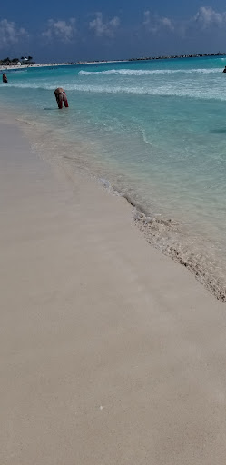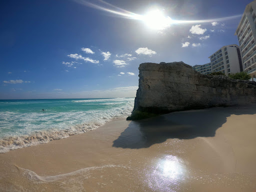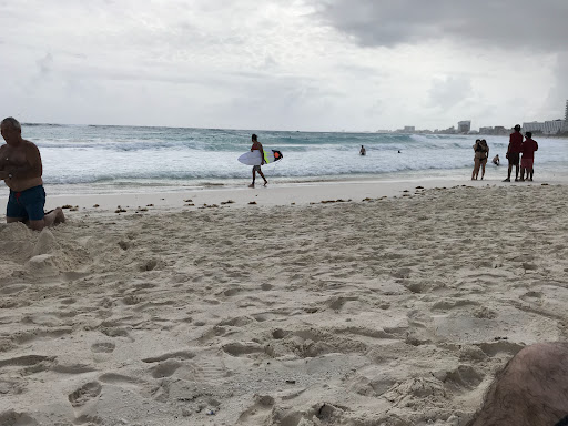 Read moreNous sommes allés à cette plage, un dimanche, avec mon épouse en passant par le chemin qui passe à côté du Coco Bongo, après avoir cherché à nous garer et avoir trouvé une place avec un autoproclamé "surveillant" pour 50 pesos. Nous sommes arrivés en fin de matinée et il y avait peu de monde jusqu'à 13h30, heure où des familles et des groupes commencent à arriver avec de la nourriture et surtout des packs de bière. Pas d'ombre sur cette plage, donc amener son parasol. Le sable est beau et la mer aussi. Par contre, c'était très venteux début février, et il était impossible de nager, voire de tenir debout avec les vagues. Pas fan (On préfère être cool) mais ambiance assurée par le Coco Bongo, même lorsqu'on est sur la plage (Musique, spectacle avec un acrobate et un...