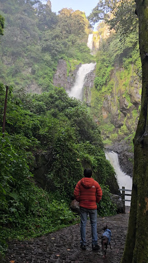 De aquí comenzó el senderismo para llegar a la cascada, no se espanten, es apto para todos, no se requiere gran condición ni ninguna habilidad especial, cuando comienzas a escuchar más fuerte la caída del agua sabes que estás por llegar y en eso, ahí está, frente a ti este impresionante espectáculo natural, donde ves la gran caída de agua escalonada y es imposible no quedar maravillado, todo es verde al rededor y podrán apreciarla desde 2 distintos puntos, en el que más te puedes acercar terminaran empapados, pero vale mucho la pena. Yo dije: wow ya con esto me doy por bien servido, pero ...